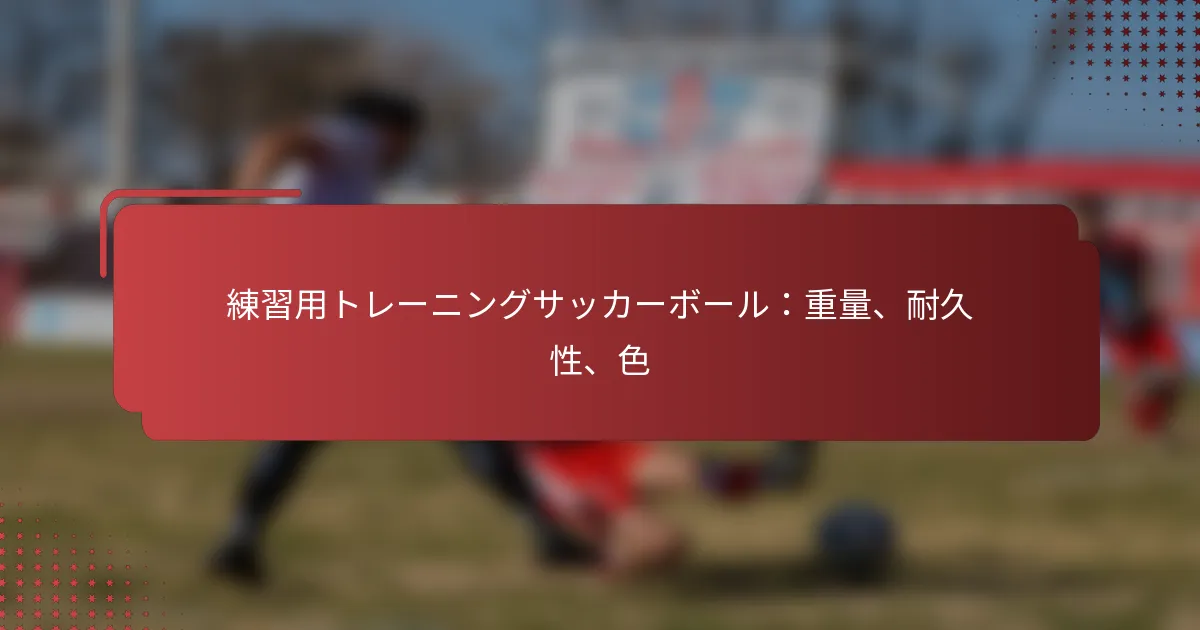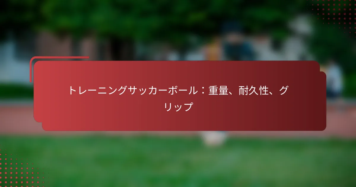 主要な特徴を比較する際には、トレーニングボールの素材と重量を考慮してください。これらの要素はパフォーマンスに大きく影響します。例えば、コンポジットレザーは優れたグリップを提供し、ゴムは屋外使用に耐久性があります。重量範囲は通常400から450グラムで、ほとんどのトレーニングボールの標準です。