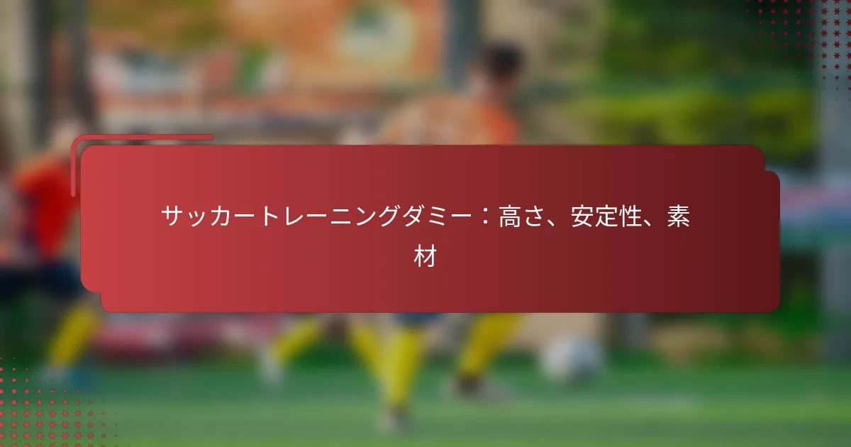 特定のトレーニングニーズに最適なサッカートレーニングダミーは、高さ、安定性、材料などの要因に依存します。適切なダミーを選択することで、ドリブル、パス、シュートなどのスキルを向上させることができるため、これらの特徴を考慮することが重要です。
